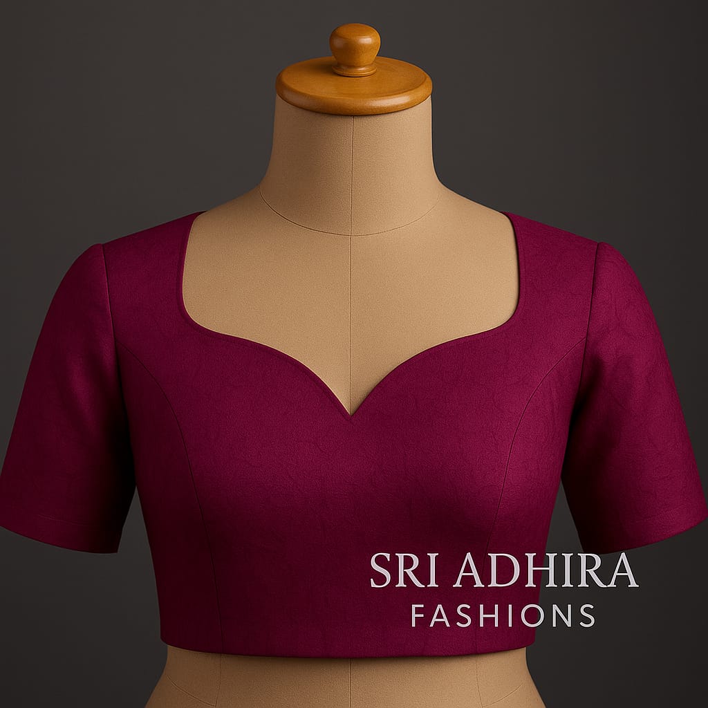 Elevate your traditional look with our premium sweetheart neck blouse, crafted for women who love minimal elegance and perfect tailoring. The deep wine hue adds a touch of luxury, while the sculpted neckline enhances the natural shape beautifully. Designed with clean panel cuts and flawless finishing, this blouse offers a modern, sophisticated silhouette suitable for weddings, receptions, and festive wear.