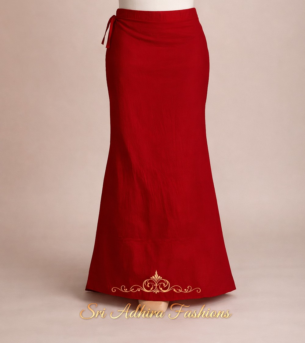 A sleek, tailored inskirt made to your exact measurements for a perfect fit and smooth drape. Ideal for sarees and lehengas, it offers a clean silhouette, comfortable waist fit, and elegant fall for everyday wear, festive occasions, and bridal styling.